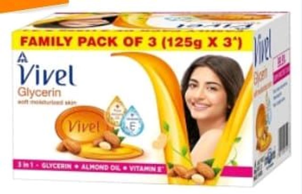 Vivel Glycerin Soft Moisturized Skin Bathing Soap Bar 1pack ( 3pcs. × 125gm. )